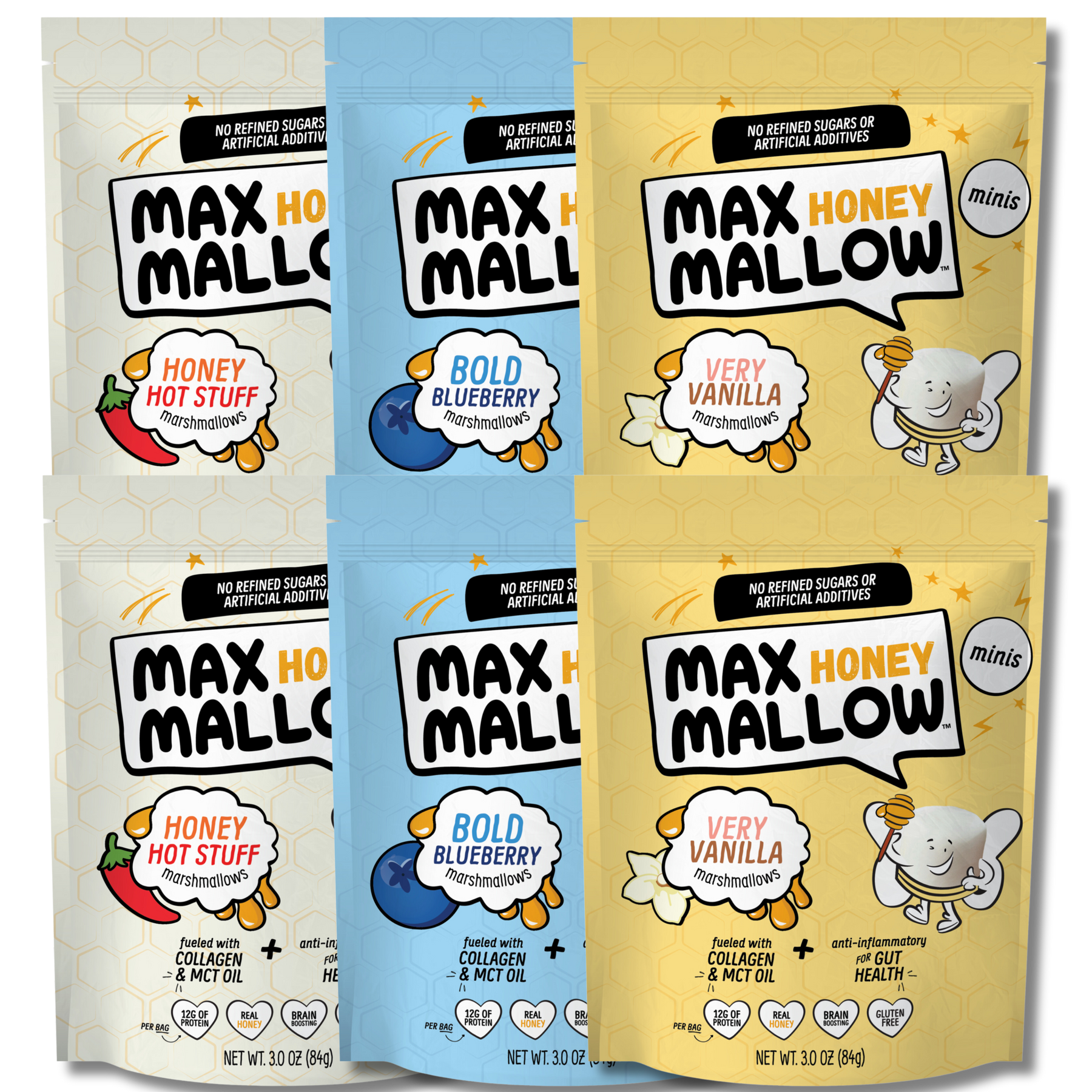 We spent over a year working through hundreds of formulations to create azero-sugar formulation we could use in our favorite sweet treats likemarshmallows,caramels, andtaffy. We also figured out a way to include all of the maximum benefits you want—like protein, healthy fats, and fiber—without any bad stuff you don’t.